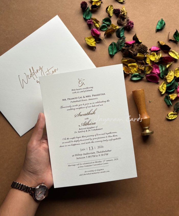 Smooth Matt off white card with gold and matt print